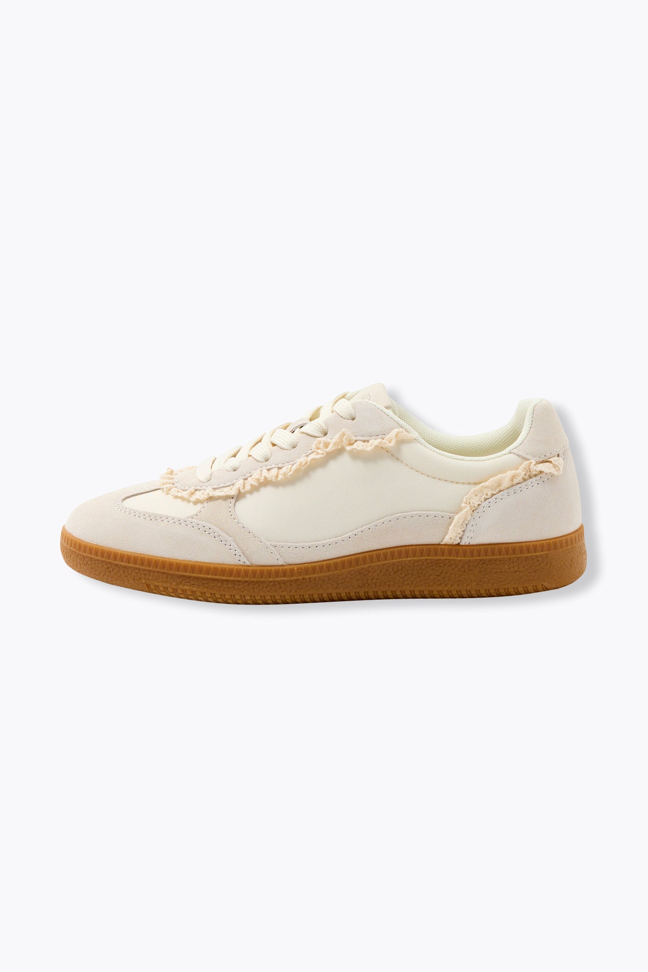 C'est un événement qui va faire grand bruit ! Ces baskets convoquent l'esprit rétro romantique avec des mini-volants en dentelle, joués en ton sur ton. Elles mixent aussi le cuir suédé et la toile déperlante. Bout arrondi. Languette, col et semelle intérieure moussés pour plus de confort. Logo Promod sur la languette. Semelle extérieure crantée. Existe en plusieurs pointures. Belle idée-cadeau.