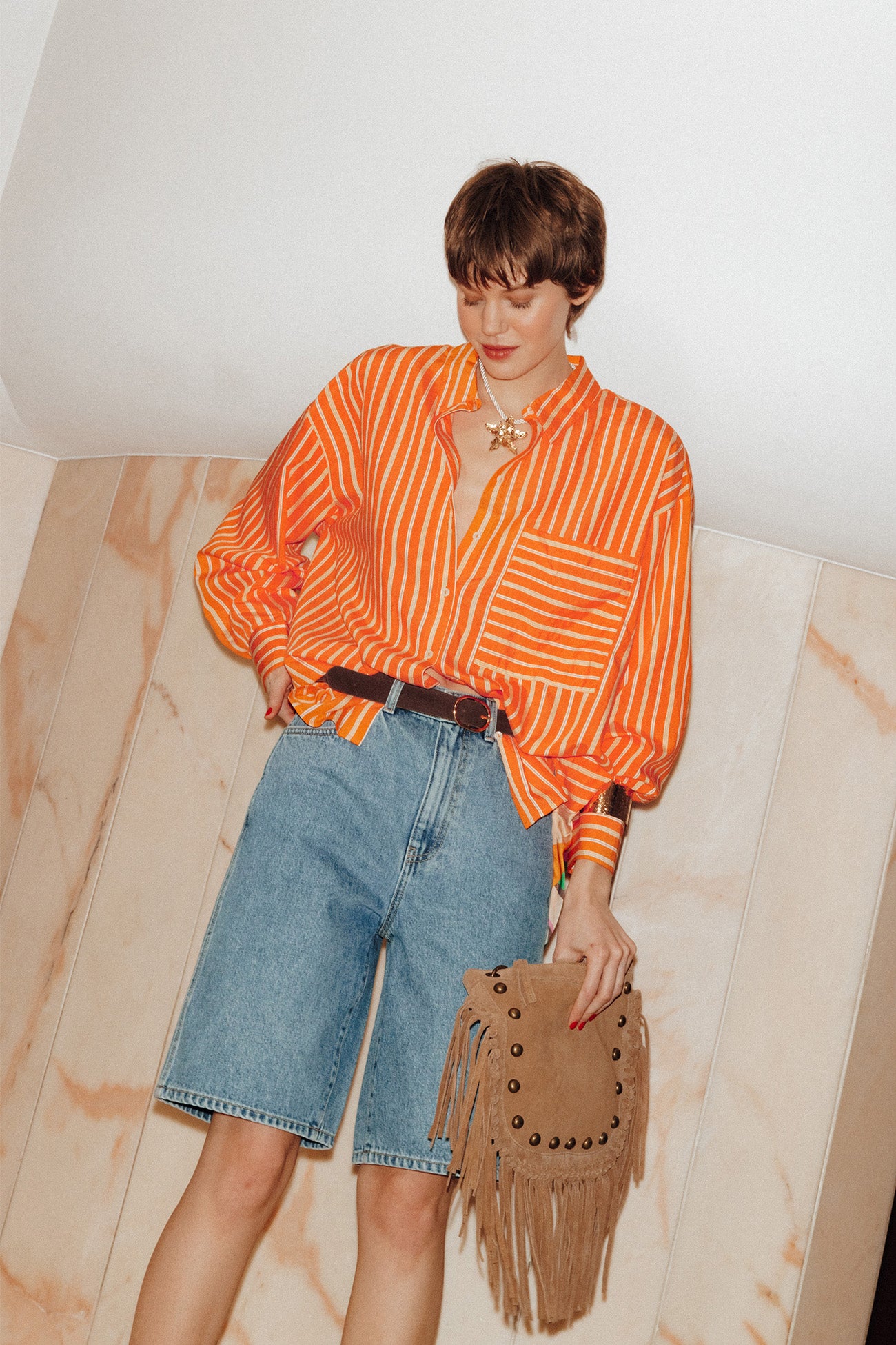 Cette saison, les bermudas s'imposent en ville. Avec une chemise, un sweat ou un t-shirt. Avec des talons ou des nu-pieds. Et toujours avec un beau sac à main pour caler la dégaine dans un style très urbain. Denim 100% coton, sans stretch. Coupe large. Taille mi-haute. Passants. 5 poches. Rivets métal. Surpiqûres contrastées. Ce bermuda femme est en 100% coton issu de l'agriculture biologique, cultivé sans pesticides, ni engrais chimiques, ni OGM afin de préserver la biodiversité.