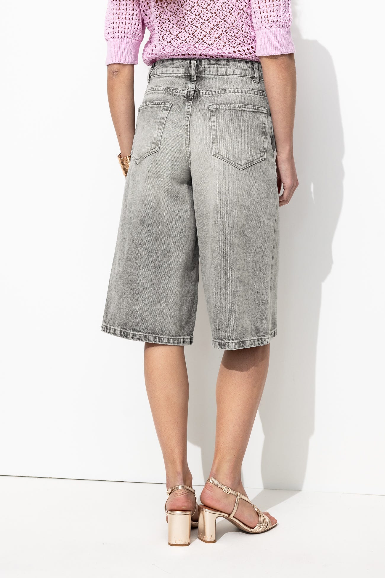 Mix entre le bermuda et la jupe-culotte... ce modèle est LA grande tendance à suivre ce printemps-été ! On l'urbanise avec des baskets. On l'upgrade avec des talons hauts. On l'emmène en vacances avec des sandales. Denim 100% coton épais et doux. Taille haute. Passants. Ouverture par bouton clou et zip métal. Rivets. 5 poches. Coutures contrastées. Ce bermuda femme contient du coton recyclé.