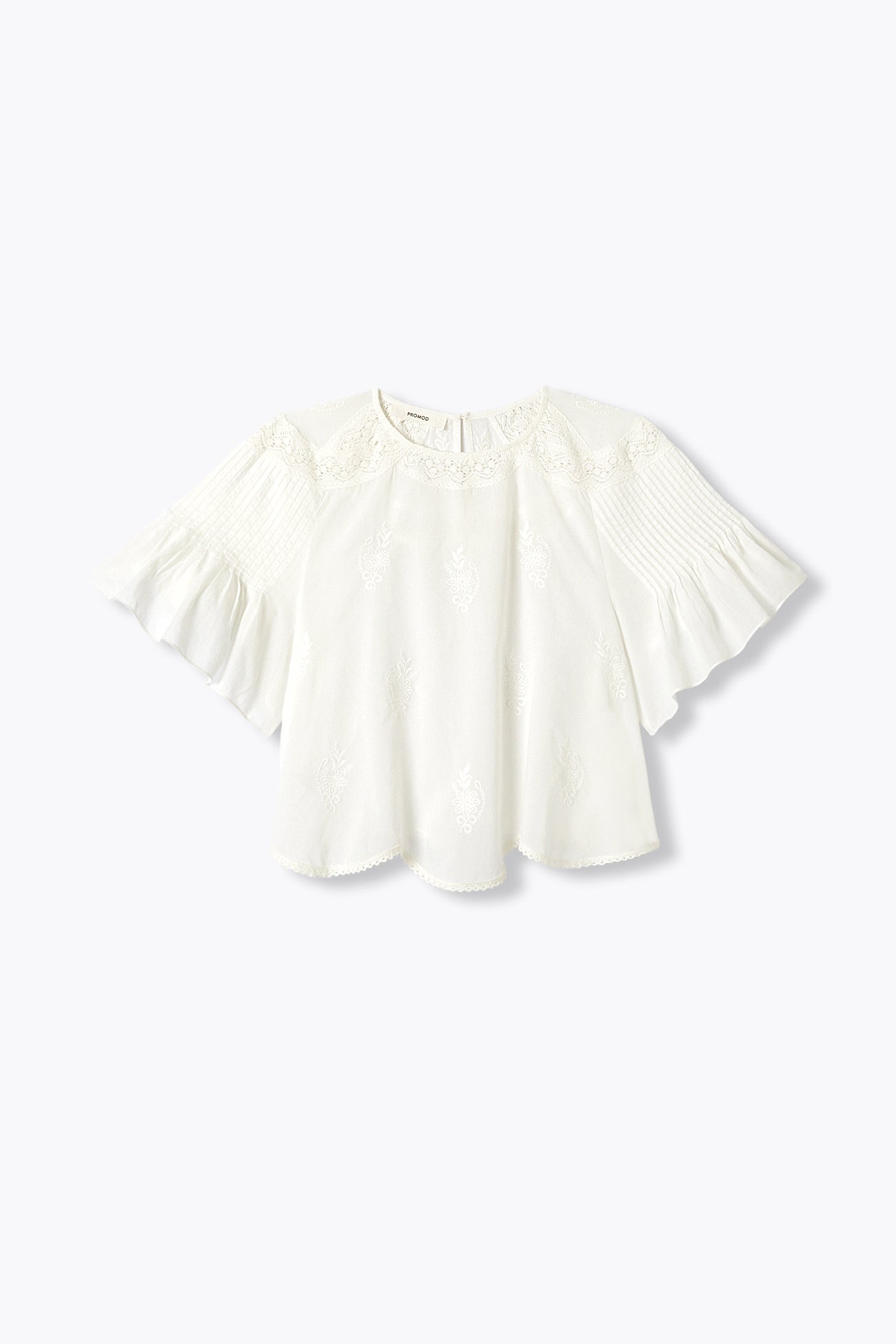 Blouse brodée évasée Femme - Ecru
