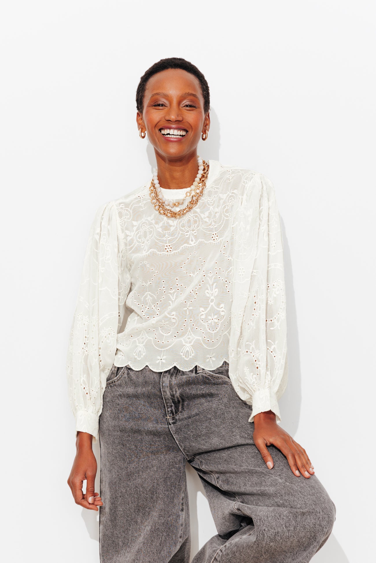 Must-have. Une transparence suggestive et des broderies ton sur ton un brin rétro : cette blouse romantique fait son petit numéro de charme, jour & soir ! Voile de viscose. Coupe droite et courte. Col rond, fente boutonnée dans le haut du dos. Manches longues bouffantes, poignets marqués. Base festonnée. Cette chemise femme est en 100% viscose issue de pulpe de bois provenant de forêts gérées.