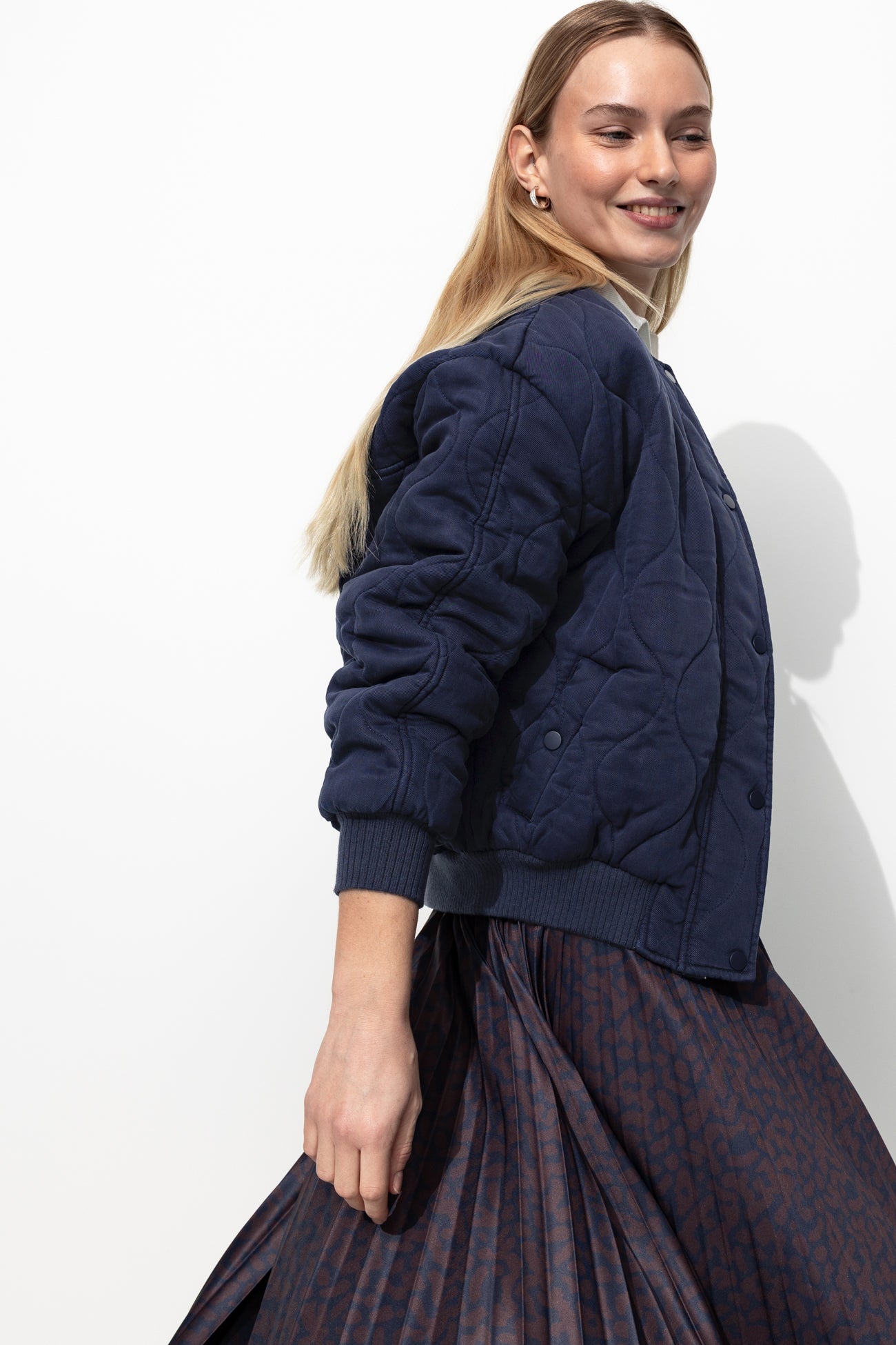 C'est l'année du bomber, blouson iconique, ici revisité dans une version en toile douce et matelassée ! Coupe blouson oversize. Col rond côtelé. Ouverture zippée cachée sous patte pressionnée. Emmanchures descendues. Manches longues. 2 poches. Bords côtelé. Cette veste femme contient du lyocell, une matière issue de pulpe de bois d’eucalyptus provenant de forêts gérées.