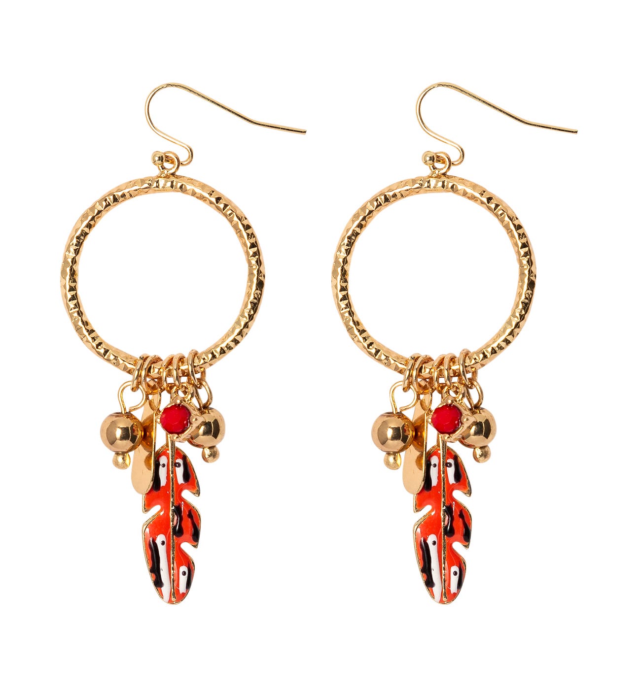 Les anneaux de ces boucles d'oreilles sont enrichi de perles, de plumes et de breloques : de quoi ajouter une once de fantaisie à un look tout simple ou matcher avec une allure folk. Taille unique. Pour oreilles perlées uniquement. Belle idée de cadeau.