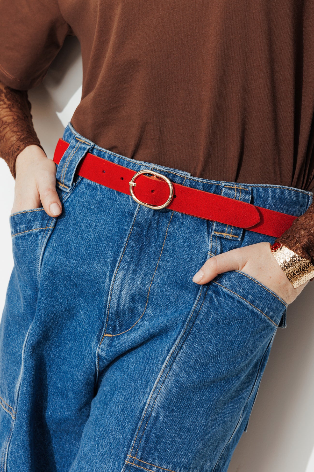 Cette ceinture en cuir suédé et sa boucle ovale est une pièce-clé, à collectionner dans plusieurs coloris pour twister un pantalon de tailleur, un jean taille haute ou un short chic... ou ceinturer une chemise, une robe fluide ou une veste. Existe en plusieurs tailles (Taille S = 34/36. M = 38/40. L = 42/44. XL = 46/48). Belle idée-cadeau.