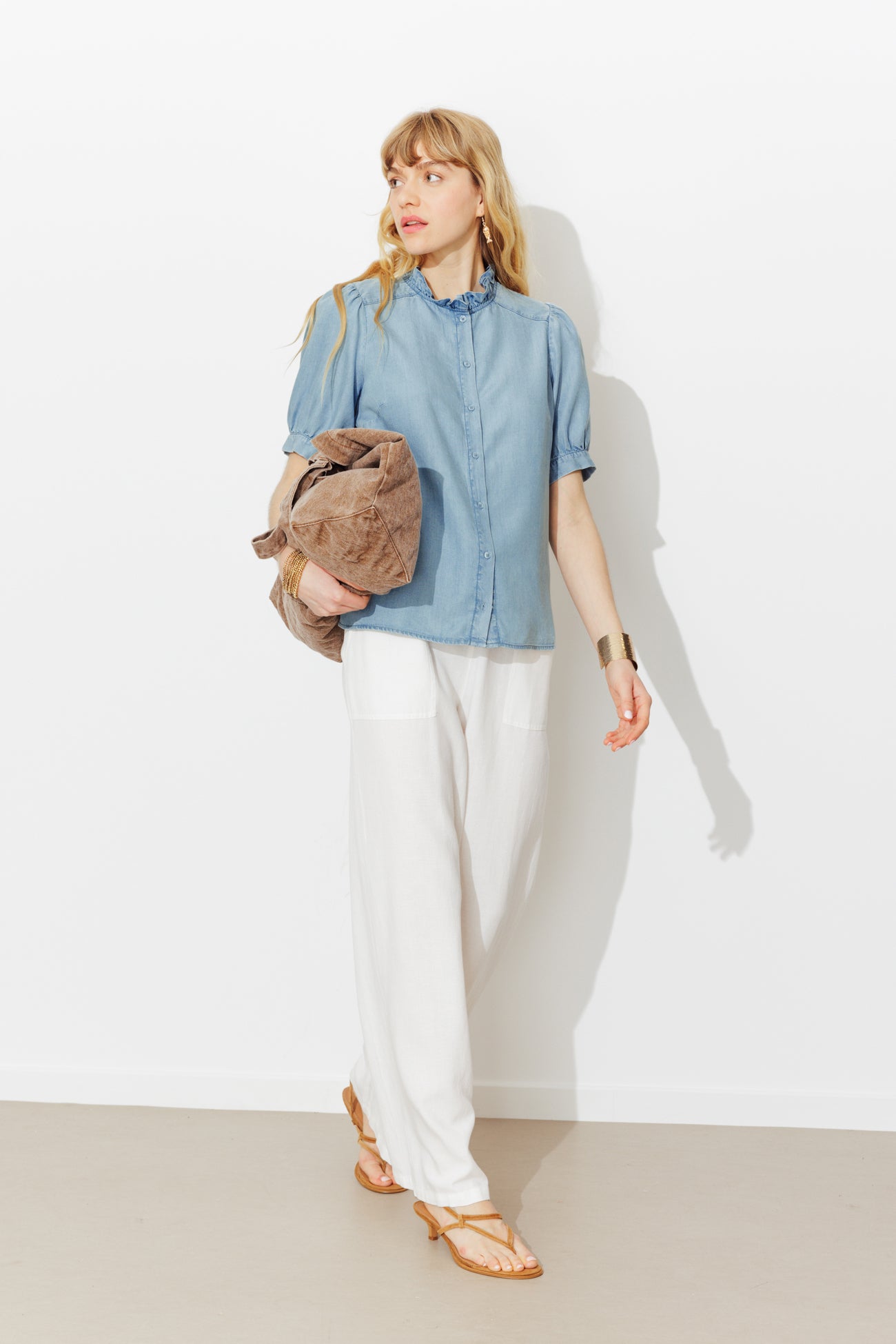 Un classique, twisté par un col frou-frou : quelle bonne idée pour enchanter nos journées, avec ou sans soleil ! On fond pour la couleur blue jean et la douceur du lyocell. Coupe droite. Col montant. Ouverture boutonnée devant. Manches princesse boutonnées. Pinces poitrine. Base légèrement arrondie. Finition piquée. Cette chemise femme est confectionnée en 100% lyocell, une matière issue de pulpe de bois d’eucalyptus provenant de forêts gérées.