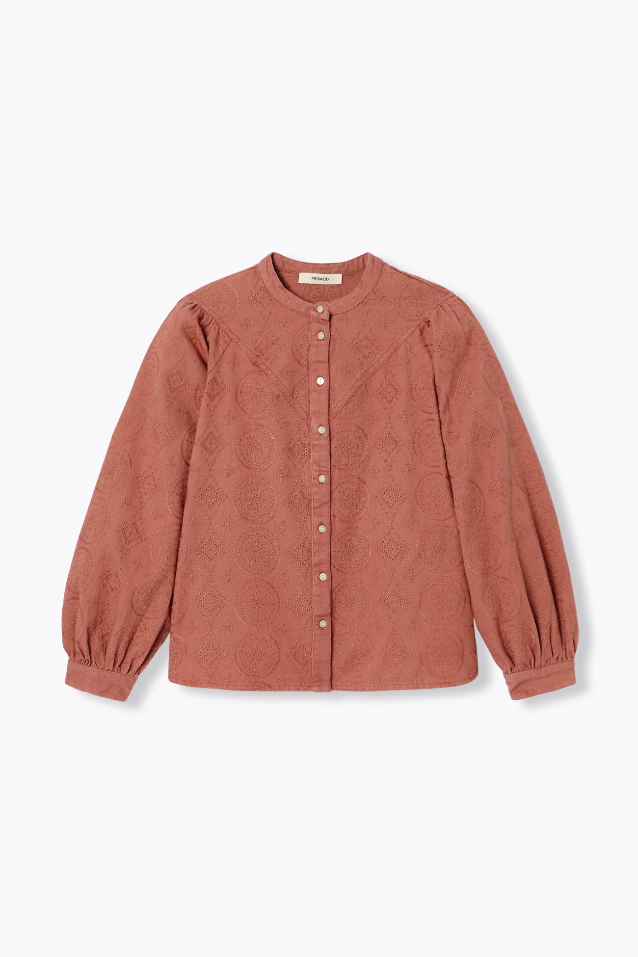 Chemise ou surchemise ? On vous laisse la liberté de changer d'avis souvent : à chaque fois, cette pièce est une révélation dans un look ! On aime la toile de coton sergé 100% coton : parfaite pour structurer l'allure. On zoome sur les broderies légèrement ajourées, très poétiques. Coupe droite. Col Mao. Ouverture entièrement boutonnée (boutons nacrés). Plastron. Manches longues bouffantes, poignets boutonnés. Base droite. Fentes arrondies côtés. Coutures ton sur ton.