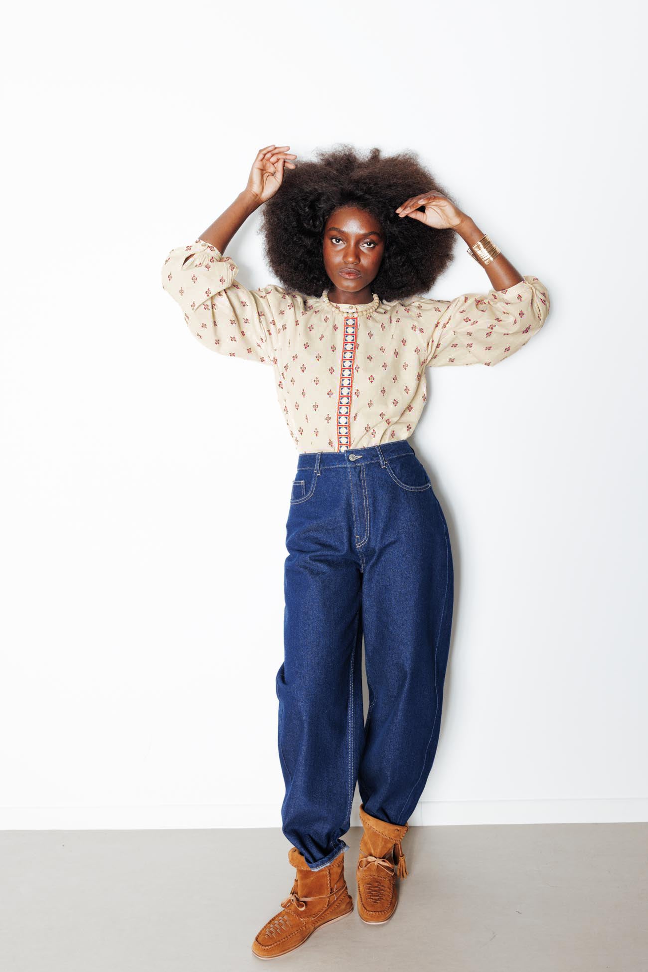 Point de croix et broderies pompon : cette blouse en coton convoque l'esprit folk et ça nous va bien ! On la combine à un jean pour rester cool. Coupe droite. Col rond. Ouverture boutonnée cachée sous patte. Manches longues bouffantes, poignets boutonnés. Base arrondie. Contient du coton issu de l'agriculture biologique, cultivé sans pesticides, ni engrais chimiques, ni OGM.