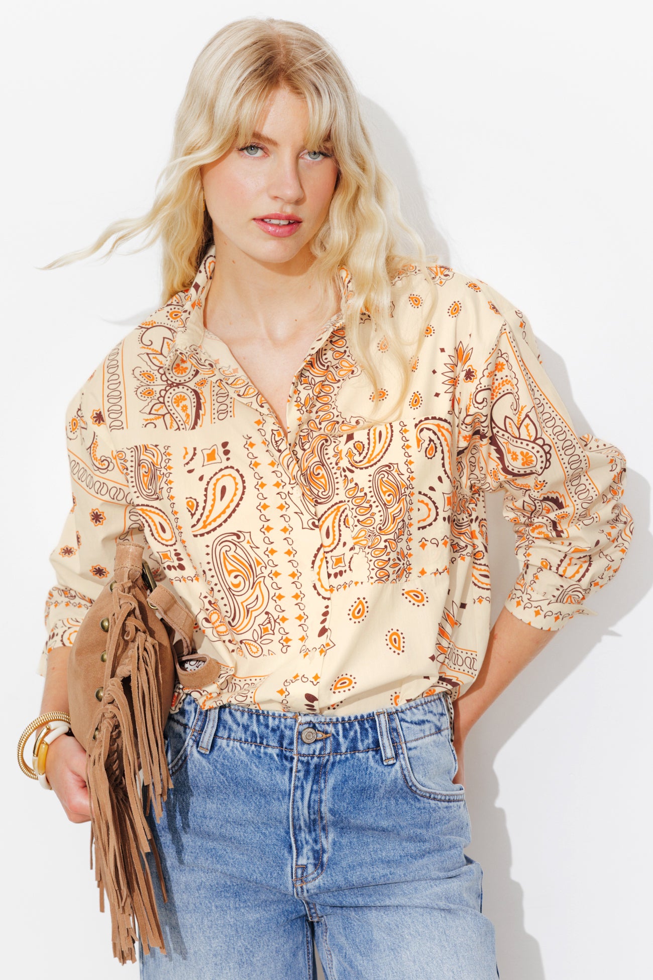Posé sur cette chemise oversize, le motif bandana (aussi appelé cachemire ou paisley) est l’un des dessins les plus populaires au monde. Il est ici retravaillé par Laura, notre illustratrice textile. Toile douce en coton. Col chemise. Ouverture entièrement boutonnée devant. 1 poche poitrine. Manches longues, poignets boutonnés. Plis d'aisance dos. Base arrondie. Finition piquée. Cette chemise femme est en 100% coton issu de l'agriculture biologique, cultivé sans pesticides, ni engrais chimiques, ni OGM afin de préserver la biodiversité.