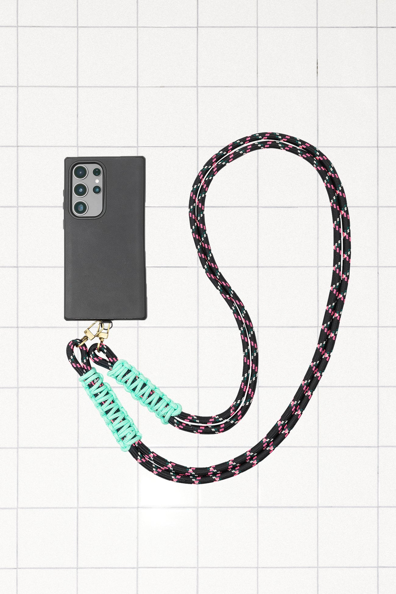 Avoir toujours son mobile sur soi. Ne manquer aucun appel. Vivre les mains libres. Sécuriser son portable partout où l'on va. Ce cordon (façon corde d'escalade) est là pour tout ça à la fois ! Cordon macramé contrasté. Mousquetons et patch en métal. Taille unique. Belle idée-cadeau.
