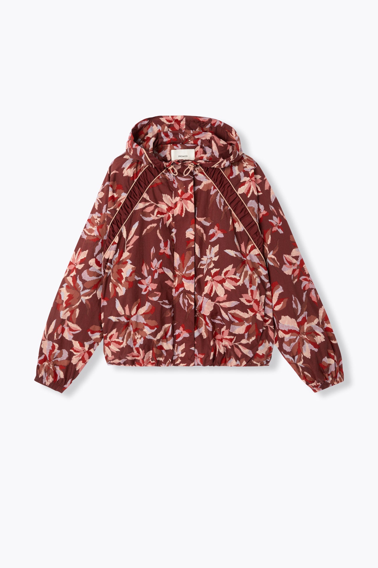Sportive ou tendanceuse : c'est en coupe-vent que vous allez traverser la ville ou courir stylée jusque votre cours de pilate ! Toile parachute (motif réalisé en interne), doublure mesh. Base élastiquée. Capuche + cordon élastique sous stoppeur. Emmanchures raglan, fronces contrastées. Manches longues chauve-souris, poignets élastiqués. Zip caché sous patte. 2 poches. Contient des fibres recyclées