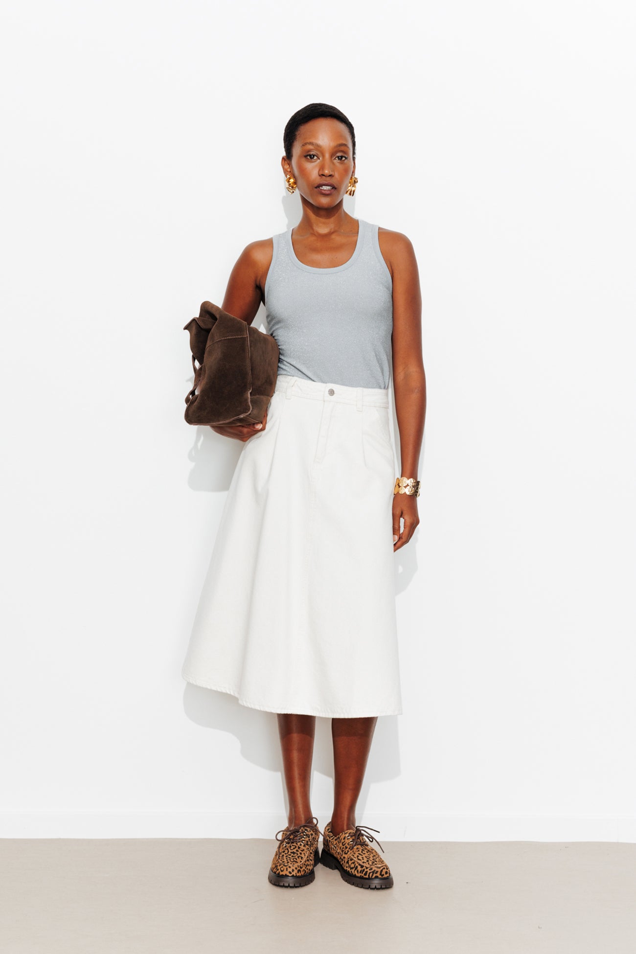 Ce débardeur rend tout plus festif, plus original, plus joyeux ! C'est l'effet pailleté qui veut ça, et la bonne nouvelle, c'est qu'il est recommandé partout, tout le temps, avec ou sans occasion en particulier ! Coupe près du corps. Biais côtelés sur le col rond et les emmanchures américaines. Base droite surpiquée. Coutures ton sur ton. Ce top femme contient des fibres recyclées.