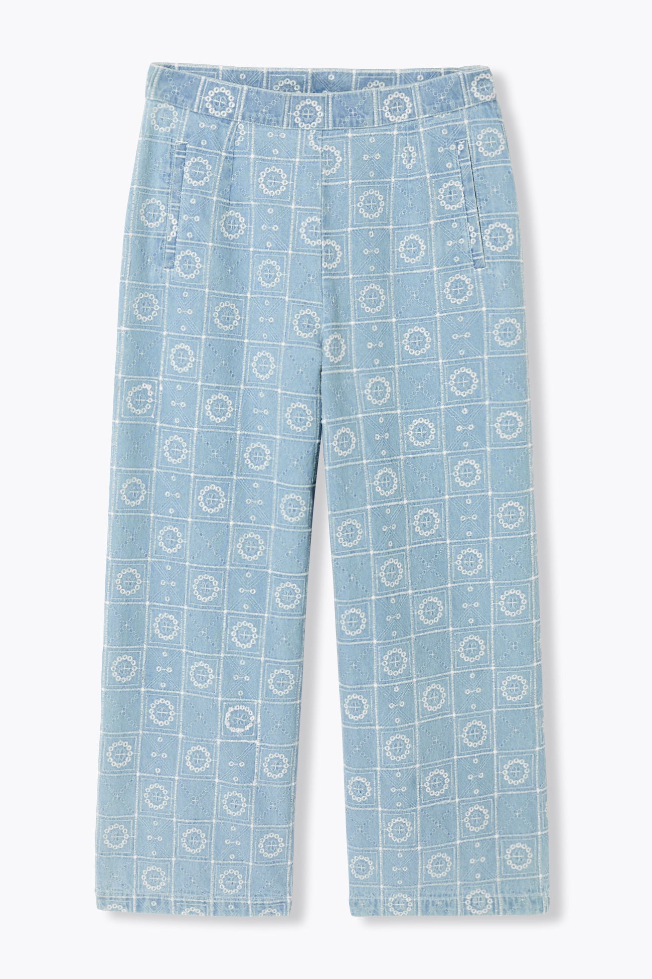 C'est une évidence, la saison printemps-été est propice à tester de nouveaux looks et à céder à la tendance broderies. Ici, l'originalité des motifs brodés est une façon de renouveler nos envies de denim délavé. On met ce pantalon en mouvement avec des baskets blanches, des ballerines rouges ou des sabots en cuir camel. On aime beaucoup le denim fin, souple et doux, 100% coton. Teinture unique. Broderies contrastées all over. Coupe courte et large. Taille haute, ouverture par patte boutonnée et zip côté. 2 fausses poches devant. Finition piquée.