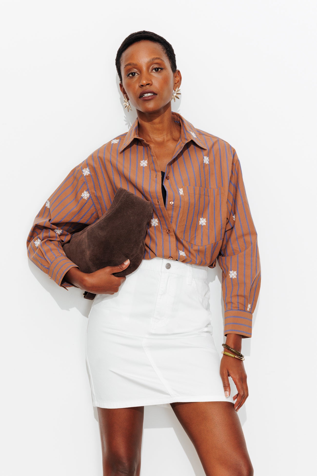 Bonne base dans un dressing. C'est simple, cette jupe est capable de changer de style aussi souvent qu'on la porte ! En duo avec un top, un sweat, une veste... elle assure à chaque fois. Coupe courte. Surpiqûres en biais devant. Passants. Bouton clou et zip. 5 poches. Cette jupe contient du coton recyclé et du lyocell, une matière issue de pulpe de bois d’eucalyptus provenant de forêts gérées.