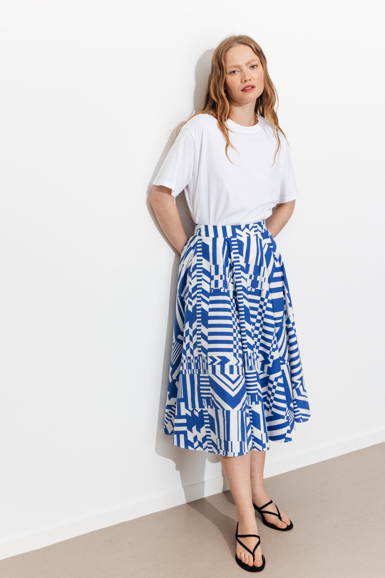 Jupe midi évasée Femme - Imprimé bleu