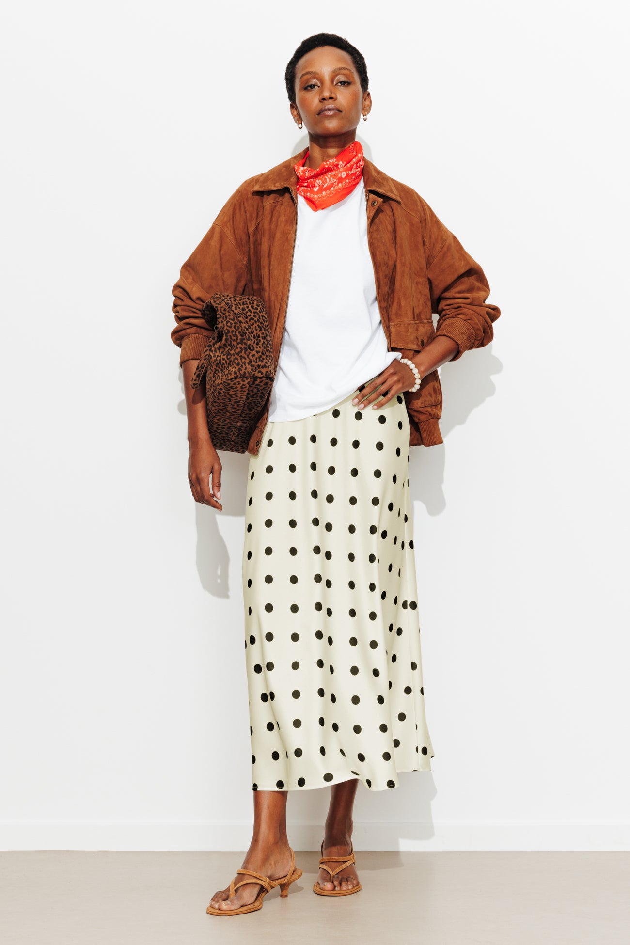 Jupe satinée à pois Femme - Imprimé écru