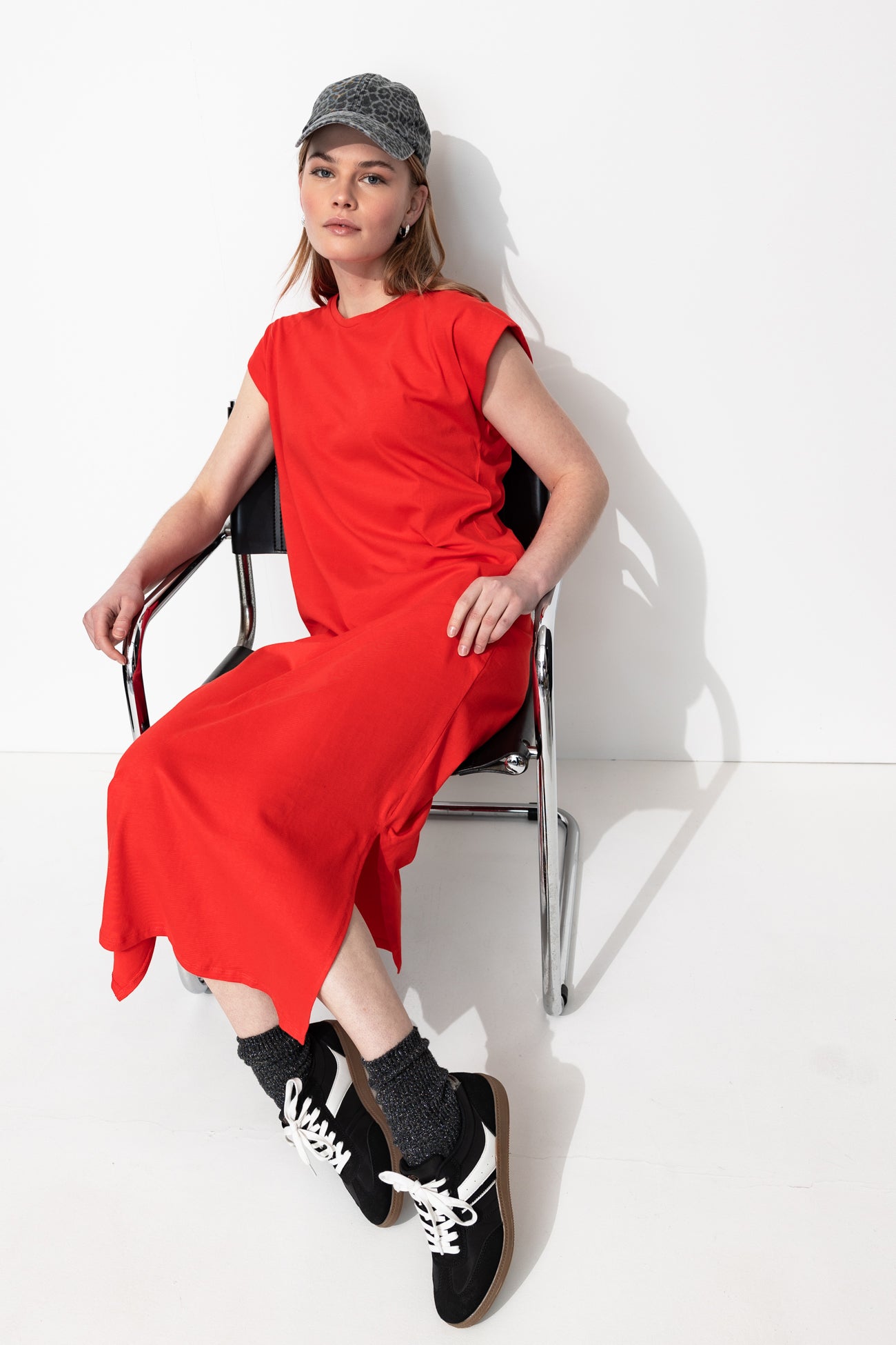 Manches très courtes et fentes sur les côtés. Cette robe mi-longue en jersey doux est abonnée au succès ! Accessoires bienvenus pour twister le style. Coupe droite. Encolure arrondie. Base droite. Contient du coton issu de l'agriculture biologique. Douce et absorbante, cette matière naturelle est cultivée sans pesticides, ni engrais chimiques, ni OGM afin de préserver la biodiversité.