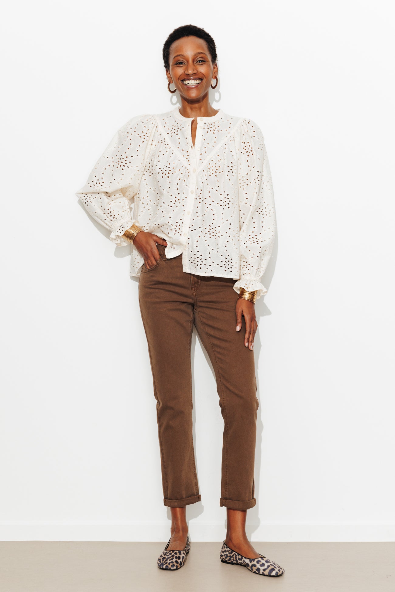 Allure cool & caractère fort. Le jean girlfriend LUCIEN prend des couleurs et rafraîchit une veste, un sweat, une chemise. A collectionner dans plusieurs coloris. Toile de coton légèrement extensible. Taille normale. Longueur 7/8è. Bouton clou, zip métal. Passants. Rivets. 5 poches. Revers ajustables. Ce pantalon femme contient du coton issu de l'agriculture biologique, cultivé sans pesticides, ni engrais chimiques, ni OGM.