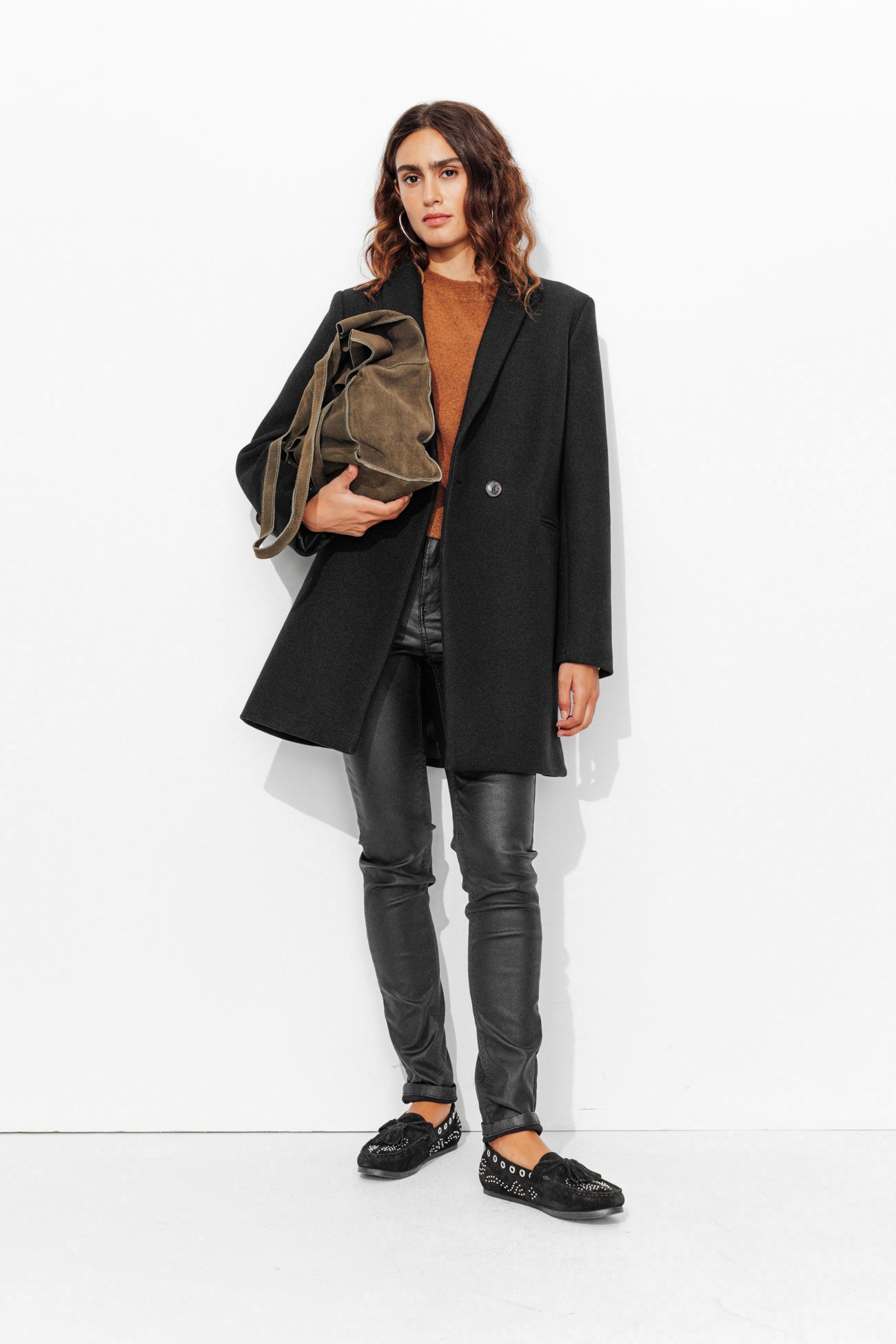 GISELE en version courte, c'est aussi un manteau en laine mélangée, iconique du dressing automne-hiver ! Coupe droite. Col tailleur. Fermeture croisée, double boutonnage. 2 poches. Epaulettes. Manches longues. Fente d'aisance. Contient des fibres recyclées. Issues de textiles ou de plastiques collectés, les fibres recyclées retournent en filature pour créer de nouveaux vêtements.