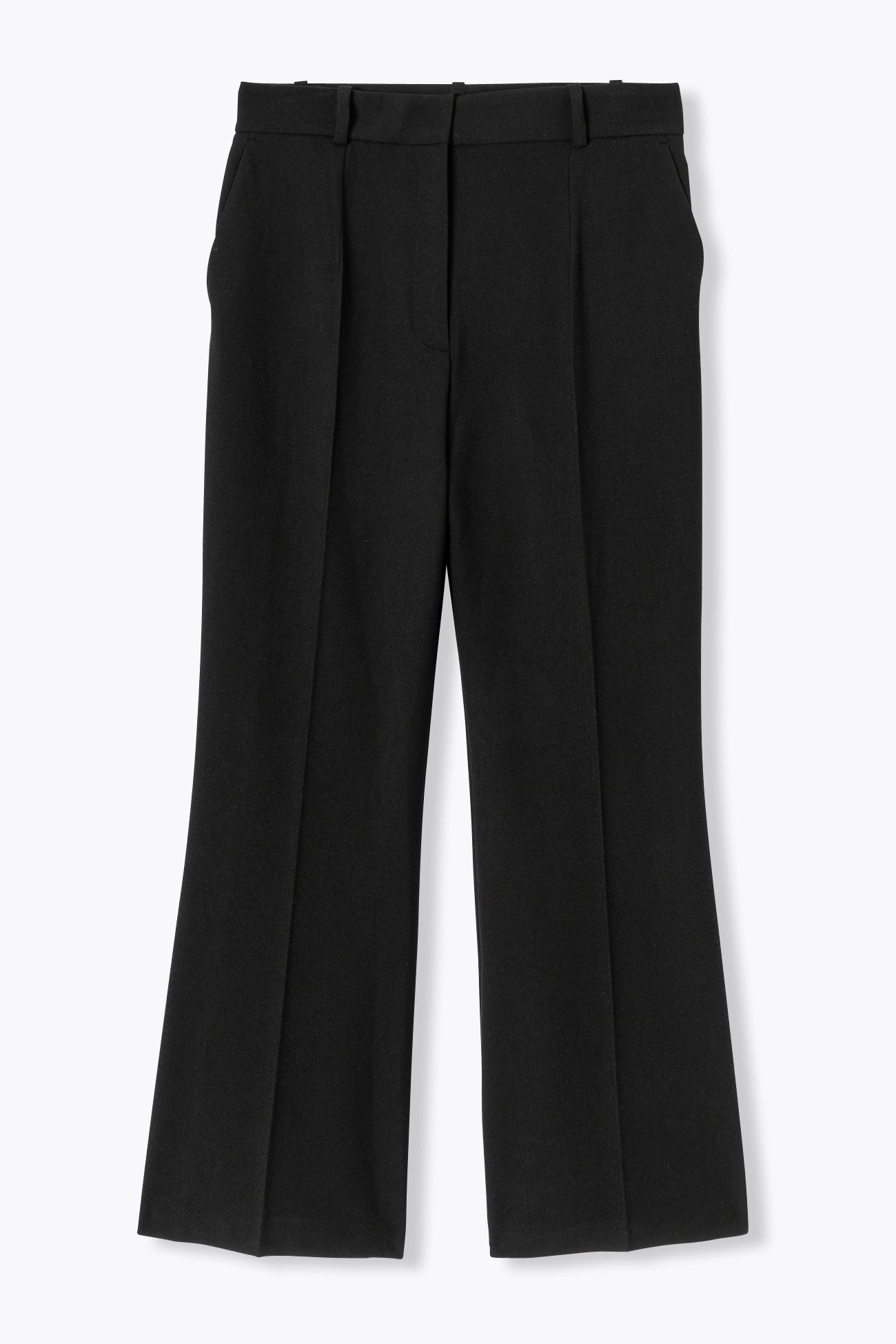 Ce pantalon de tailleur affiche sa volonté de former des duos chics ou chocs ! Avec une veste de tailleur ou un top à paillettes. Avec un pull col roulé ou un top en dentelle : ça matche parfaitement ! Tissu légèrement extensible. Coupe flare, jambes courtes. Taille haute. Passants. Ouverture par bouton, zip et agrafes cachés. Pinces. Plis marqués. 2 poches. Contient des fibres recyclées.