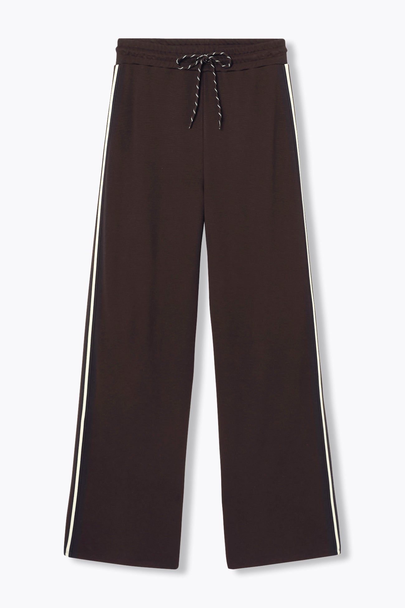Le jogging aime autant les terrains de sport que les rues de la ville. Il sort en baskets (classique) ou en ballerines (+original). A réinventer avec une veste de tailleur, une chemise oversize, un pull court... On zoome sur les deux bandes côtelées sur les côtés. Jersey Milano doux et souple. Coupe large, longueur standard. Taille élastiquée avec cordon coulissant à nouer. 2 poches italiennes. Ce pantalon contient des fibres recyclées.