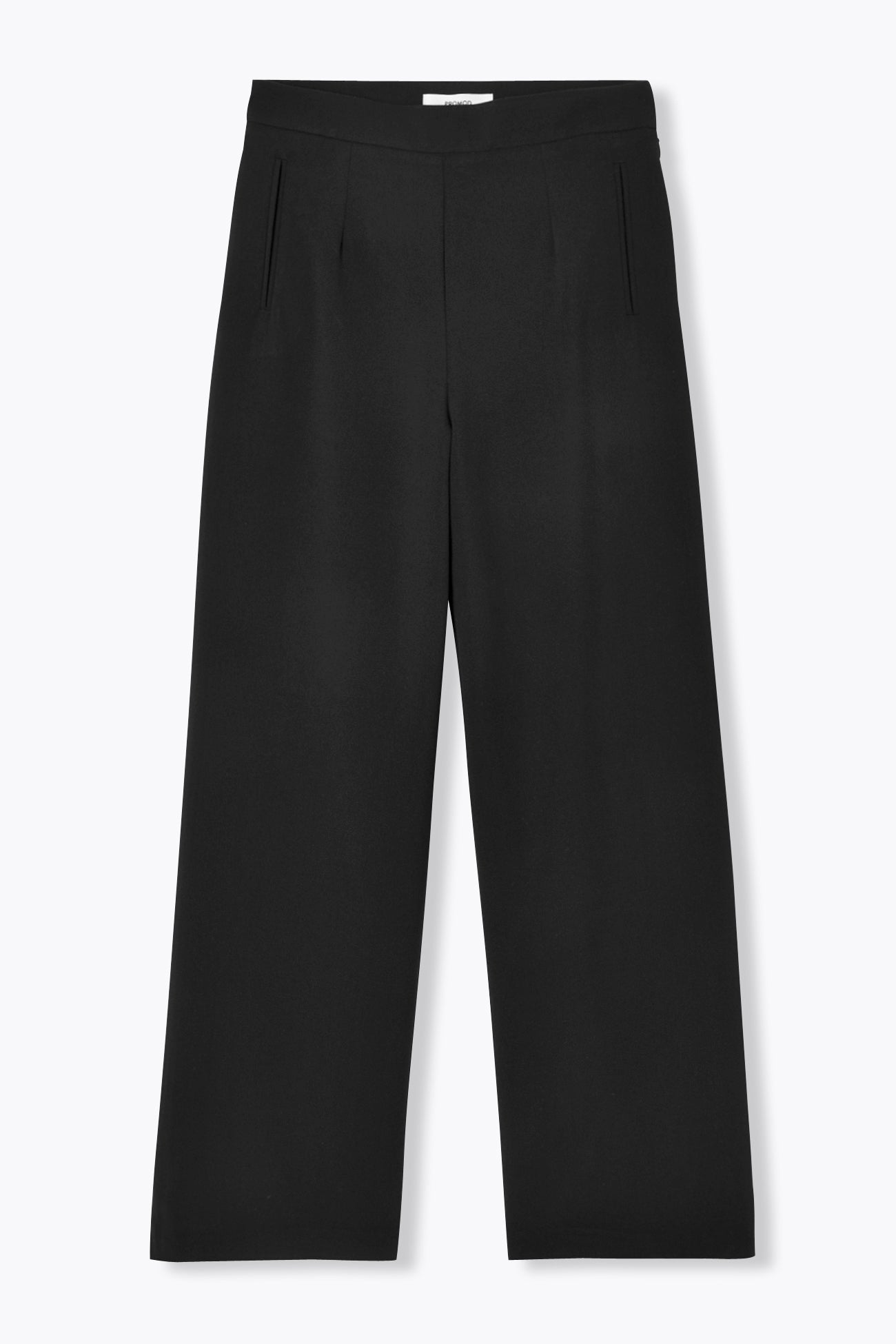 A aimer autant le jour que le soir. Pour son allure. Sa simplicité. Ce pantalon large et taille haute fait partie des essentiels du dressing. Son ADN est chic et il peut aussi se la jouer cool avec un sweat, un t-shirt, une blouse imprimée. Les chaussures aussi vont changer le style. Tissu doux et fluide enrichi en viscose. Taille haute. Ouverture par patte boutonnée et zip invisible côté. 2 fausses poches passepoilées devant. Pinces devant et dos. Coutures invisibles. Ce pantalon femme contient des fibres recyclées.