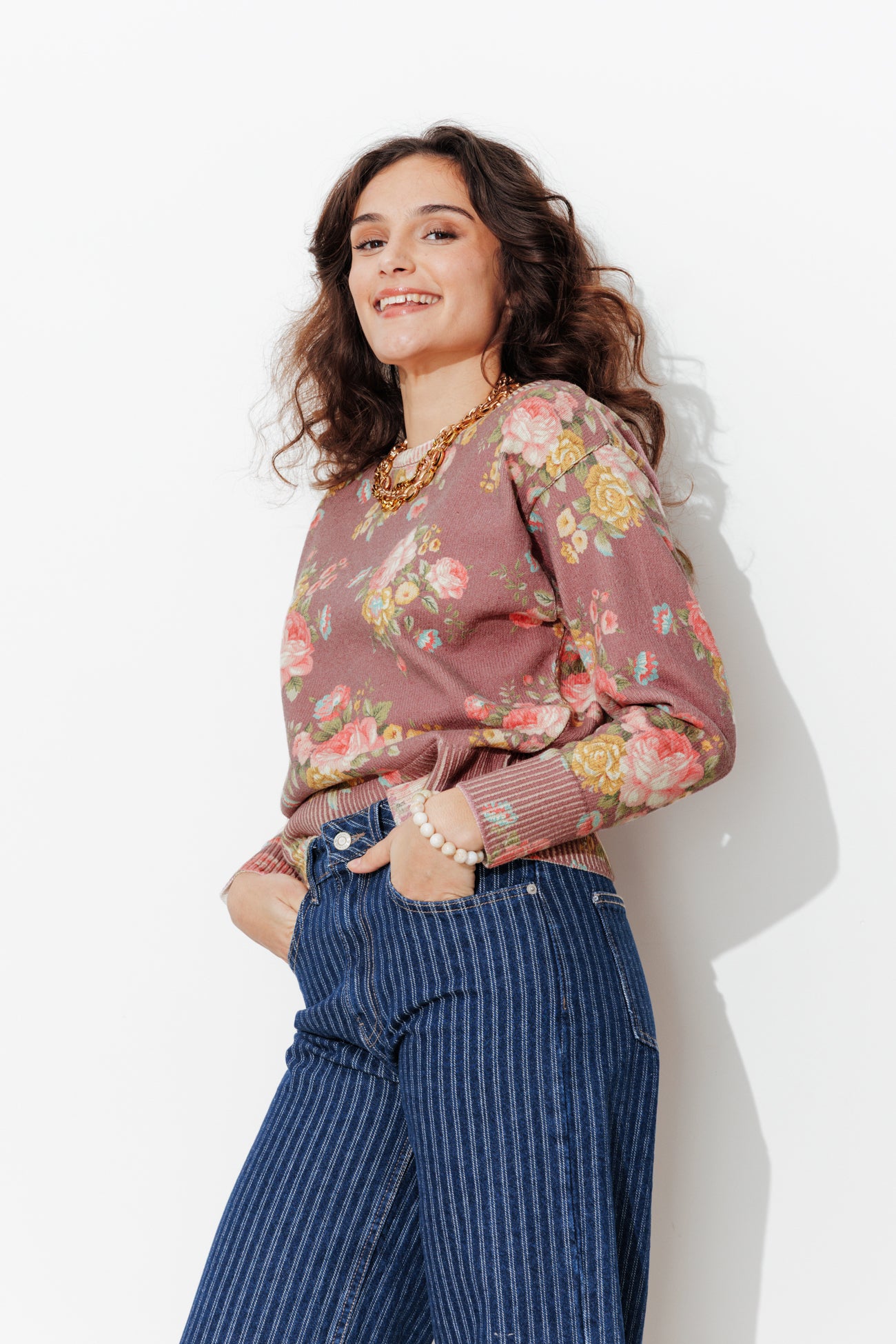 La mode est au romantisme rétro & British, ambiance cottage anglais ! De grandes fleurs imprimées se posent sur ce pull en maille de coton mélangé. Le charme opère immédiatement ! A associer avec un jean brut ou délavé. Coupe resserrée à la base. Col rond. Emmanchures descendues. Manches longues. Base droite. Bords-côtes. Ce pull femme contient du coton recyclé et des fibres recyclées.