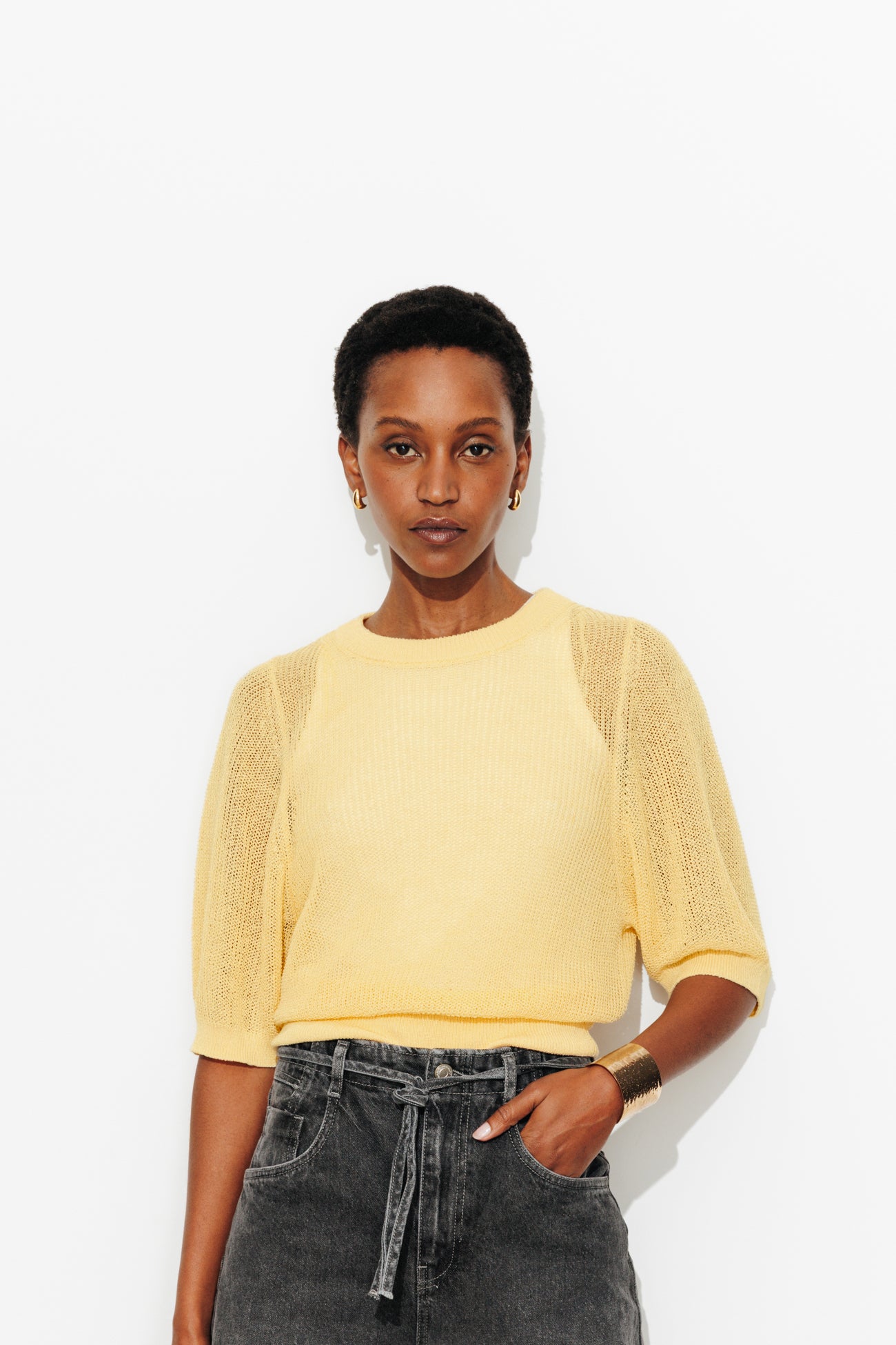 Pull ajouré manches courtes - Jaune clair