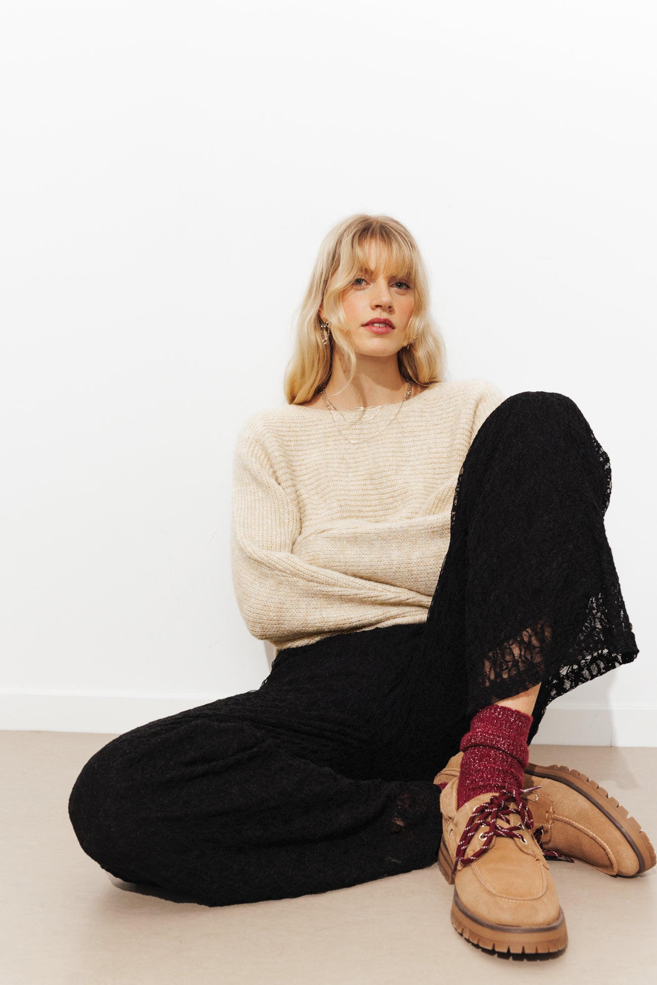 Une légère brillance, beaucoup de moelleux, une belle ampleur... impossible de résister à la tentation de se lover dans ce pull oversize ! Cette saison, on l'aime avec du satin, du velours ou du denim. La maille côtelée horizontale est enrichie de fils métallisés. Encolure arrondie côtelée. Emmanchures chauve-souris. Manches longues coniques. Base droite. Bords-côtes.