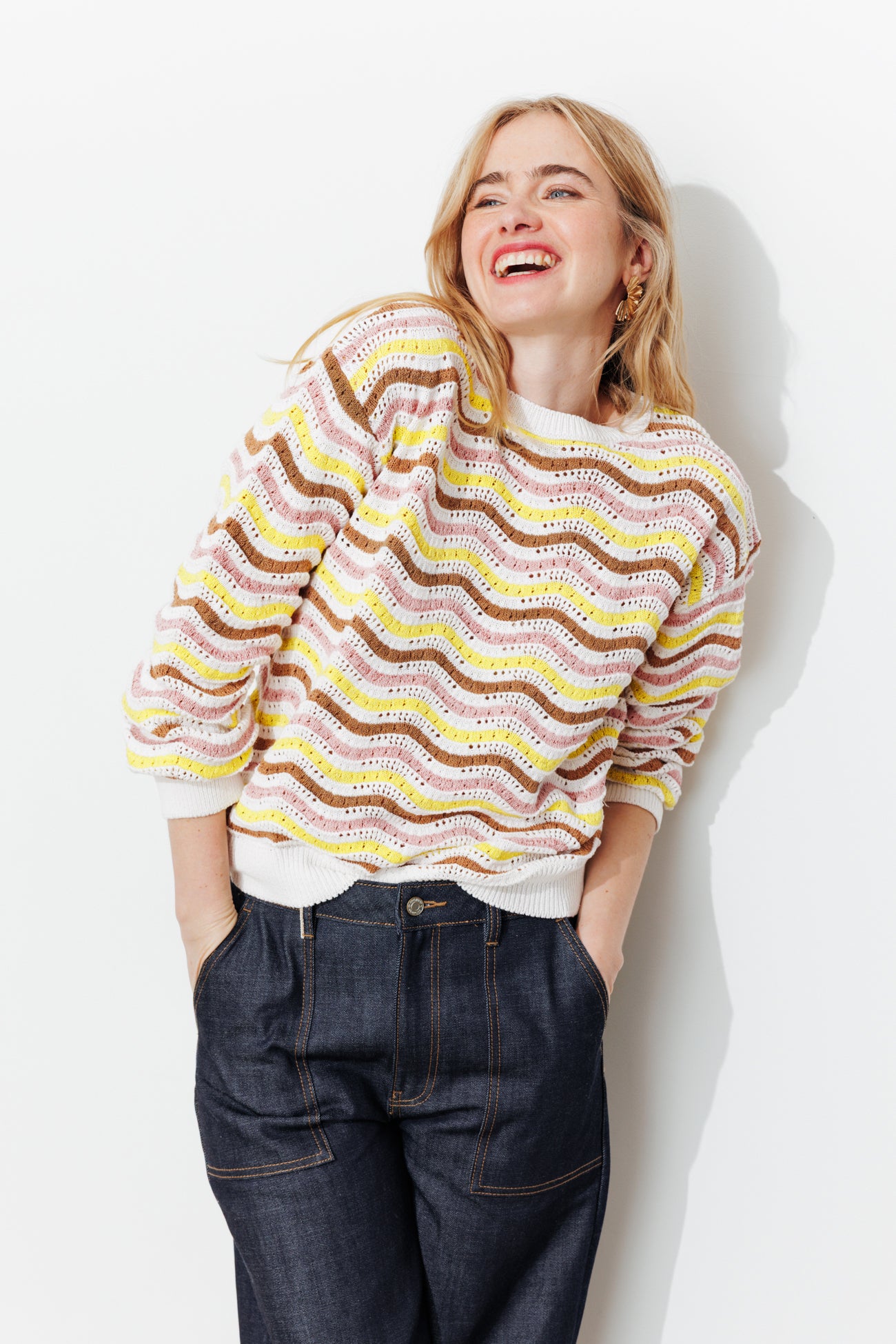 Des rayures en zig-zag reliefé, des couleurs tendres et des reflets irisés : voici le beau programme en vue ! Ce pull place l'originalité en tête dans le dressing : ça fait du bien ! On lui donne de l'importance avec un jean brut. Maille fantaisie ajourée. Coupe droite légèrement resserrée à la base. Col rond. Manches longues. Base droite. Bords-côtes. Ce pull contient des fibres recyclées.