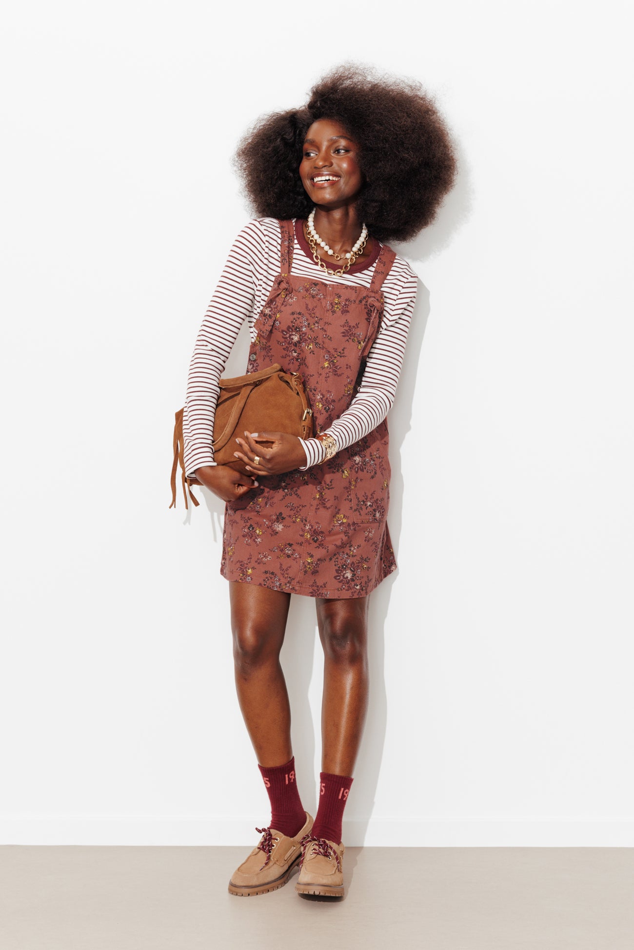 Tendance wallpaper, cottage anglais ! Dès son arrivée dans le dressing (et dans nos vies), la robe-salopette fait toujours plaisir à voir (et à porter !). En détail : griffe Promod vintage. Toile 100% coton. Coupe trapèze. Bretelles plates à nouer, ajustables. Ouverture par boutons clou de chaque côté. 2 grandes poches plaquées devant. Base droite. Cette robe courte femme contient du coton recyclé