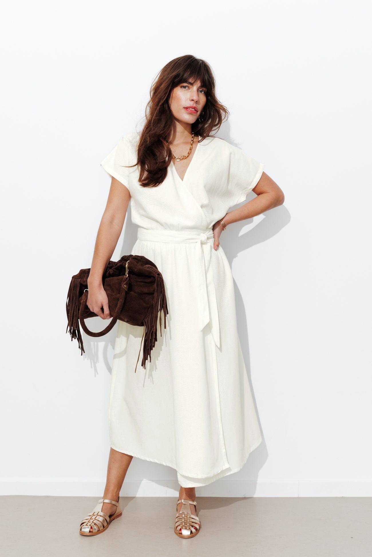La robe portefeuille prouve son sens du chic, tout en restant cool (le jour, le soir). On ajoute des bijoux et on fait varier son style avec des chaussures différentes : sandales, spartiates, sabots... Décolleté V croisé, ceinture à nouer. Buste ajusté, coupe évasée sous la taille. Manches courtes. Cette robe contient du lin et de la viscose issue de pulpe de bois provenant de forêts gérées.