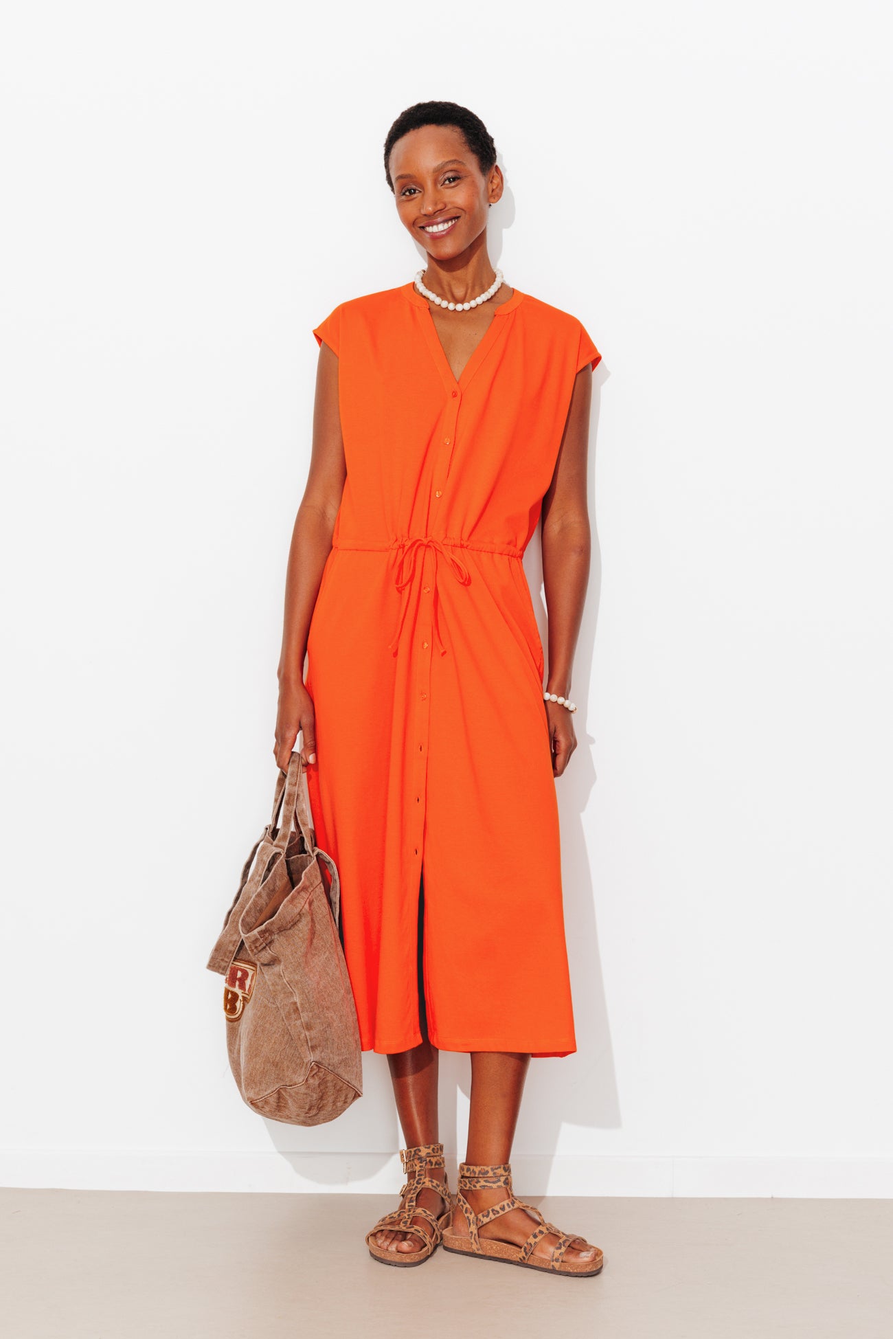 Le cool. L'été. Cette robe t-shirt sans manches se fait une belle place au soleil ! A twister avec des bijoux, un sac en paille, une besace ou un tote-bag de plage. Col tunisien. Ouverture boutonnée. Emmanchures américaines. Taille ajustable avec lien coulissant. 2 poches. Cette robe femme est en 100% coton issu de l'agriculture biologique, cultivé sans pesticides, ni engrais chimiques, ni OGM.