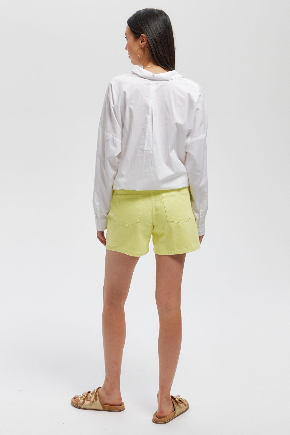 SOLEIL D’HIVER. Ce short a été imaginé pour toutes celles qui ont prévu de mettre le cap au soleil ! On le collectionne dans plusieurs coloris, et on en fait un de nos best-of du dressing printemps-été ! Belle toile en 100% coton sergé Passants. Ouverture par bouton et zip métal. 5 poches. Rivets. Coutures ton sur ton.