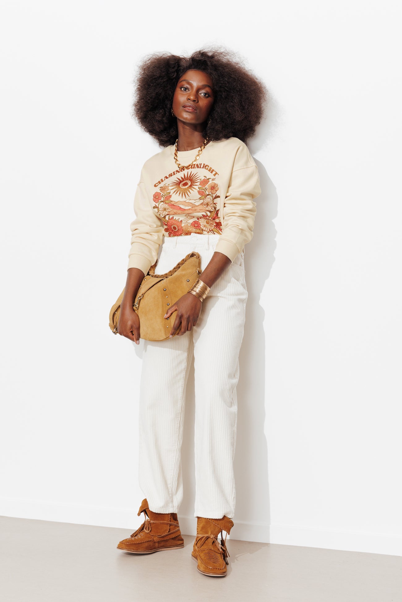 "Chasing sunlight, soul in bloom"... Ce sweat à message est enrichi d'un effet pailleté pour briller encore plus ! Motif imprimé devant. Dos uni. Molleton souple, intérieur gratté ultra-doux. Coupe légèrement oversize. Col rond. Emmanchures descendues. Manches longues. Base droite. Bords côtelés. Ce sweat-shirt femme contient du coton issu de l'agriculture biologique, cultivé sans pesticides, ni engrais chimiques, ni OGM.