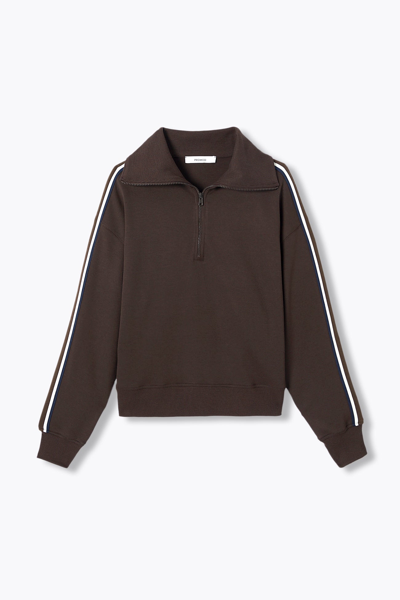 Mood sportswear assumé pour ce sweat-shirt en maille Milano ! Deux options-style possibles. 1/ le mix & matcher avec un pantalon à bandes. 2/ L'associer à une jupe en dentelle ou un jean taille haute pour casser les codes. Coupe légèrement resserrée à la base. Col montant côtelée, ouverture zippée. Emmanchures descendues. Manches longues à bandes contrastées. Poignets côtelés. Base droite côtelée. Ce sweat-shirt femme contient des fibres recyclées.