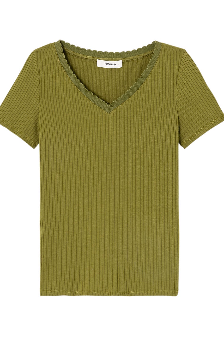Tout doux et un peu rétro dans l'allure... Ce t-shirt côtelé et près du corps devient très vite indispensable : c'est une bonne base dans un dressing. On aime son col V côtelé festonné. Manches courtes. Base droite. Cet article contient de la viscose responsable, douce et fluide : elle est issue de pulpe de bois provenant de forêts gérées (lorsqu’un arbre est abattu, un autre est replanté).