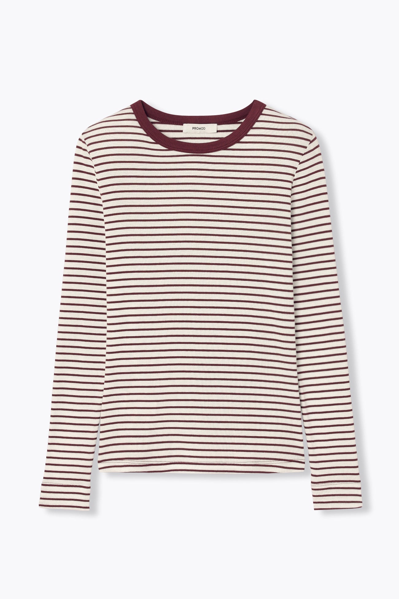 T-shirt côtelé rayé marinière - Rayé bordeaux