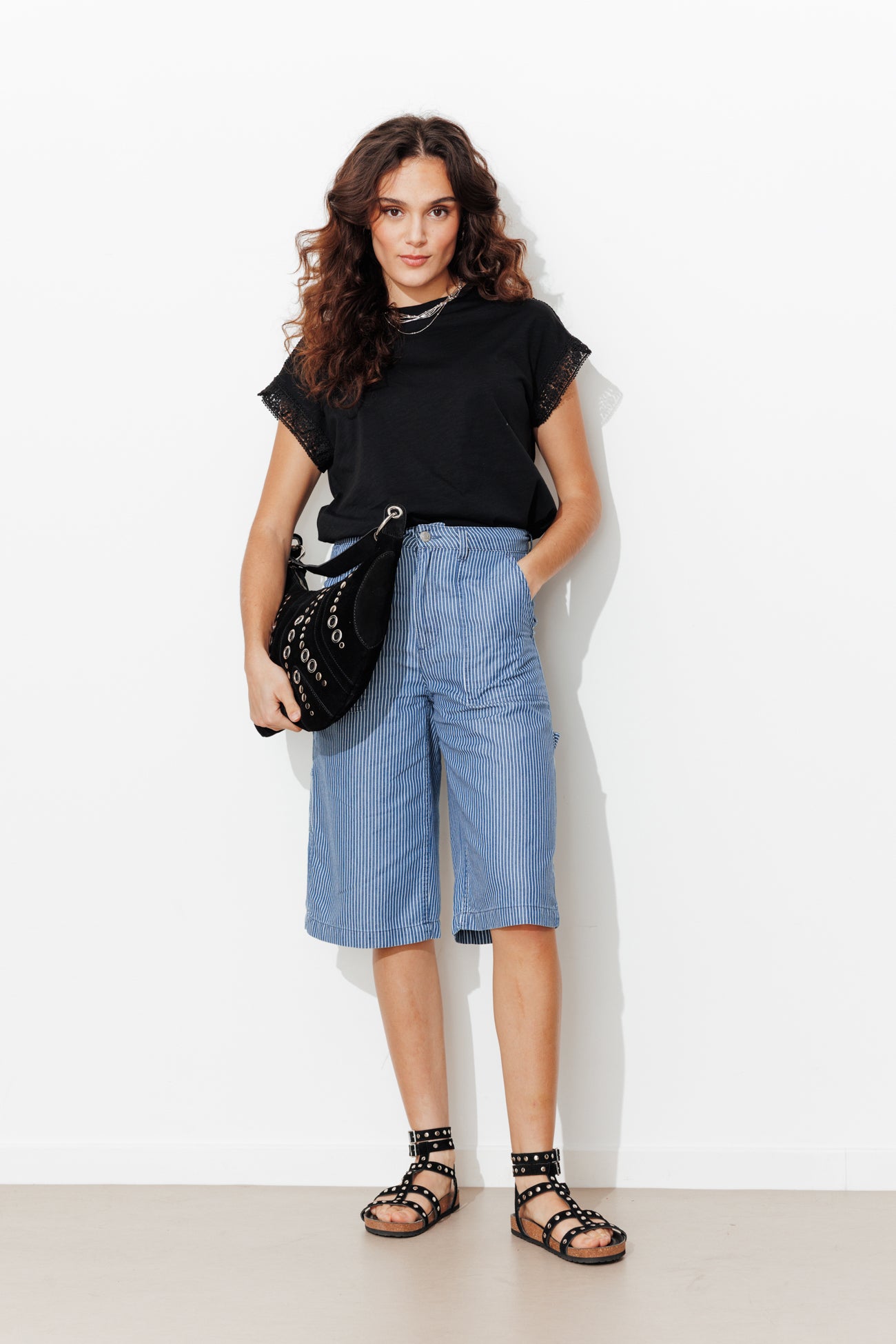 T-shirt détail dentelle Femme - Noir