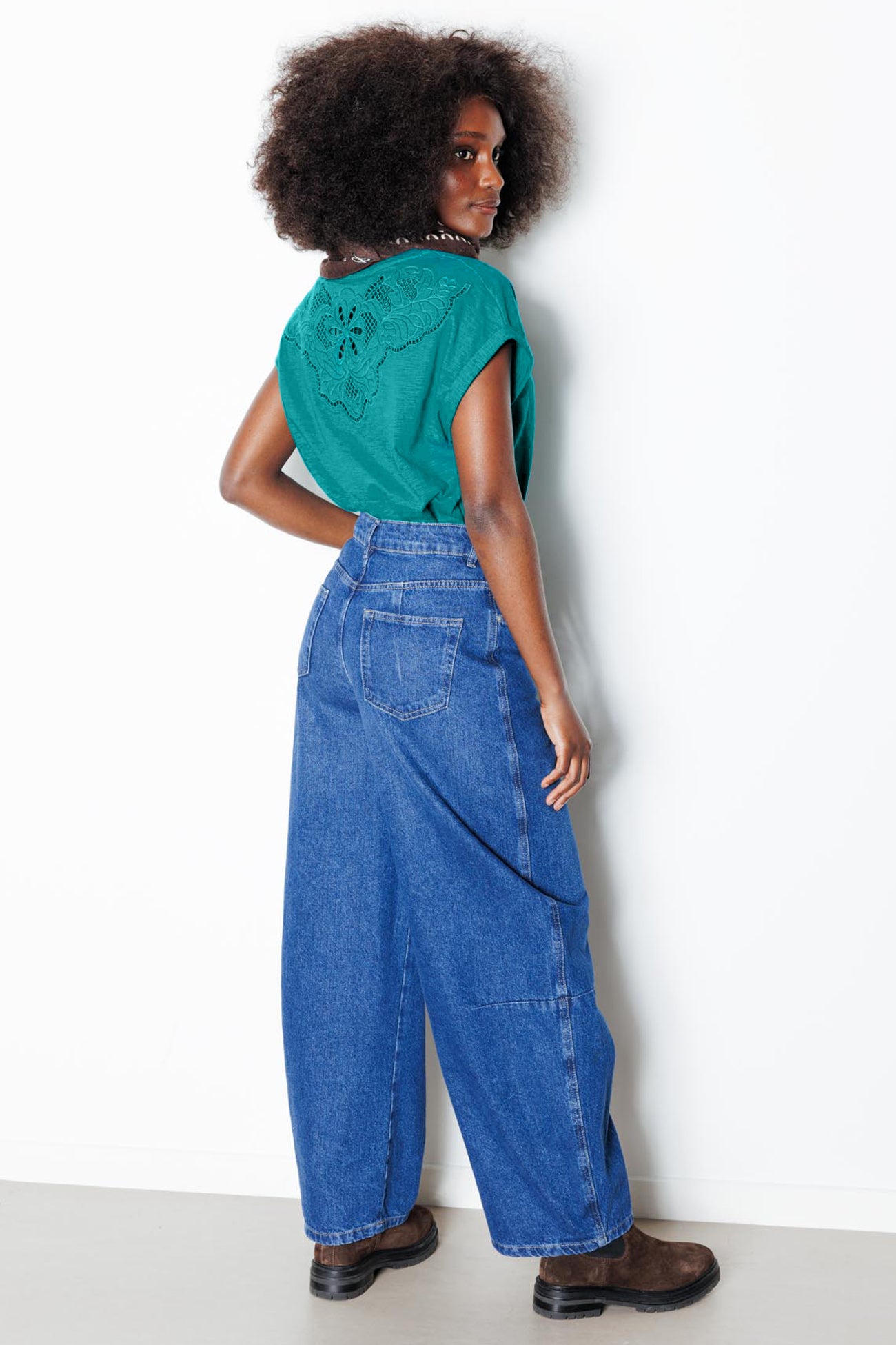 Faire le choix de la simplicité et de l'originalité. C'est tout un art et c'est ce que propose ce t-shirt ! De face, il est classique. De dos, il est enrichi d'un empiècement en broderie anglaise ! On aime. A mixer avec un jean, un pantalon de tailleur, une jupe midi, un short : ça passe bien avec tout ! Jersey doux. Coupe droite. Col V devant. Manches courtes à revers piqués. Base droite. Ce t-shirt femme contient du coton recyclé.