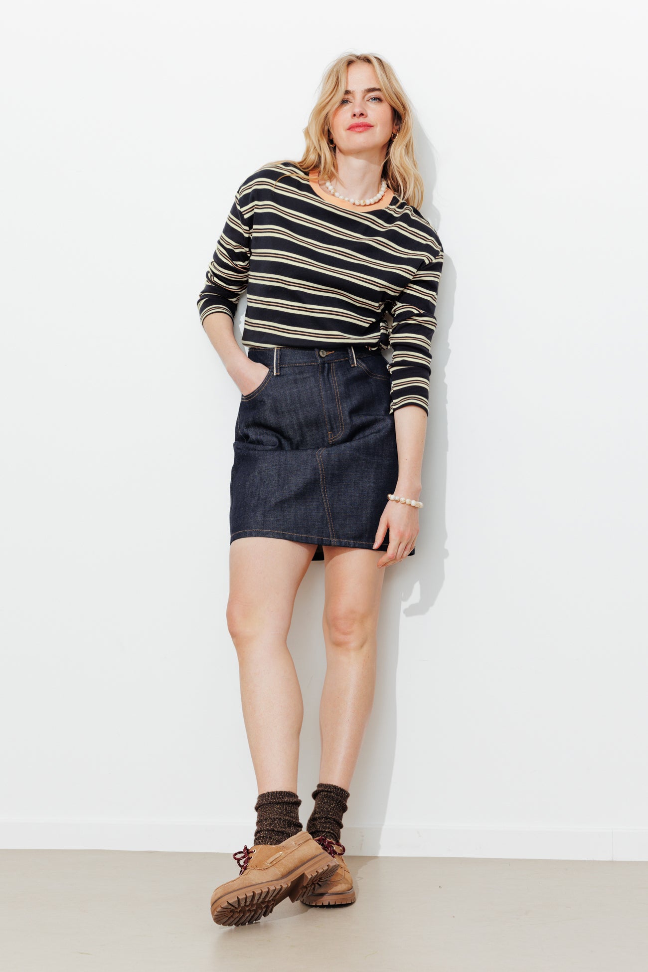 Nouvelle alternative à la marinière. Ce t-shirt à fines rayures rafraîchit un jean, une jupe en toile ou un bermuda en lin. On s'amuse à le porter manches longues ou remontées. On aime la douceur de son jersey 100% coton, doux et épais. Coupe droite. Col rond contrasté. Emmanchures descendues. Contient du coton issu de l'agriculture biologique, cultivé sans pesticides, ni engrais chimiques, ni OGM