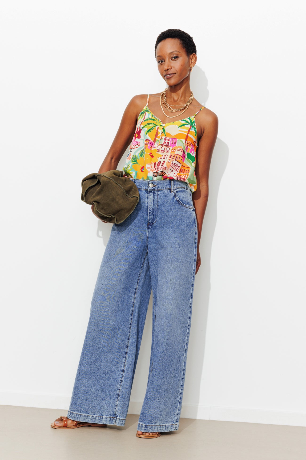 Oh le beau caraco ! A porter en solo sous le soleil. A mixer avec un cardigan fluffy, un blouson en jean ou une veste de tailleur. A combiner avec quelques beaux bijoux bien choisis. On aime les fines bretelles ajustables et les petits boutons enrobés devant. Coupe légèrement évasée. Décolleté V devant et dos. Liseré en finition. 100% viscose issue de pulpe de bois provenant de forêts gérées.